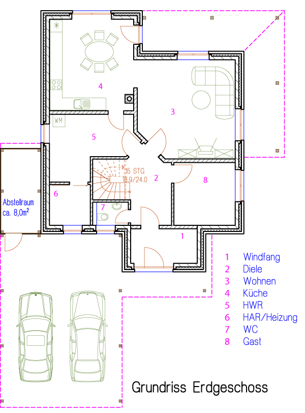 | Windfang | ... m² | Flur | ... m² |