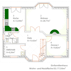 | Wohn- und Nutzfläche | 77,50 m² | Wohn- und Nutzfläche | 60,96 m² |