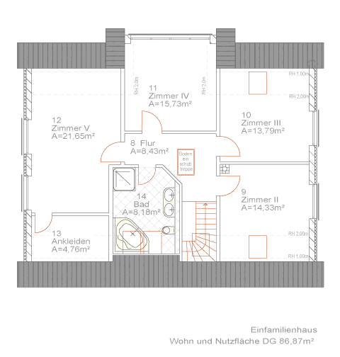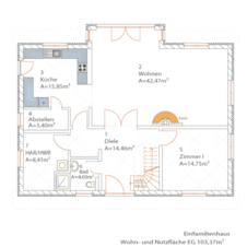 | Zimme 1 | 14,75 m² | Ankleiden | 4,76 m² |