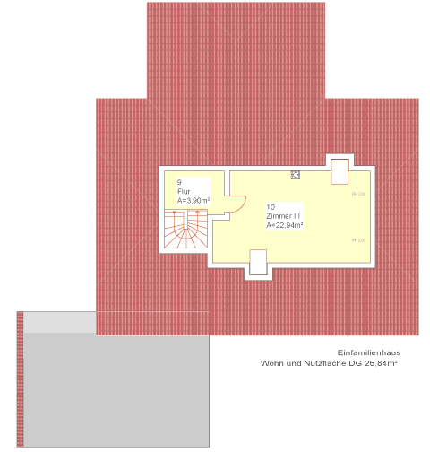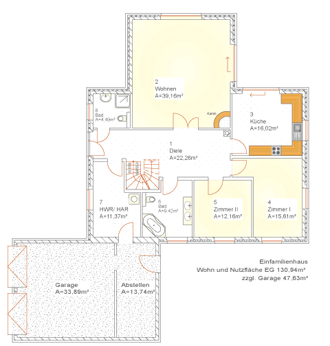 | Wohnbereich | 39,16 m² | Flur | 3,90 m² |